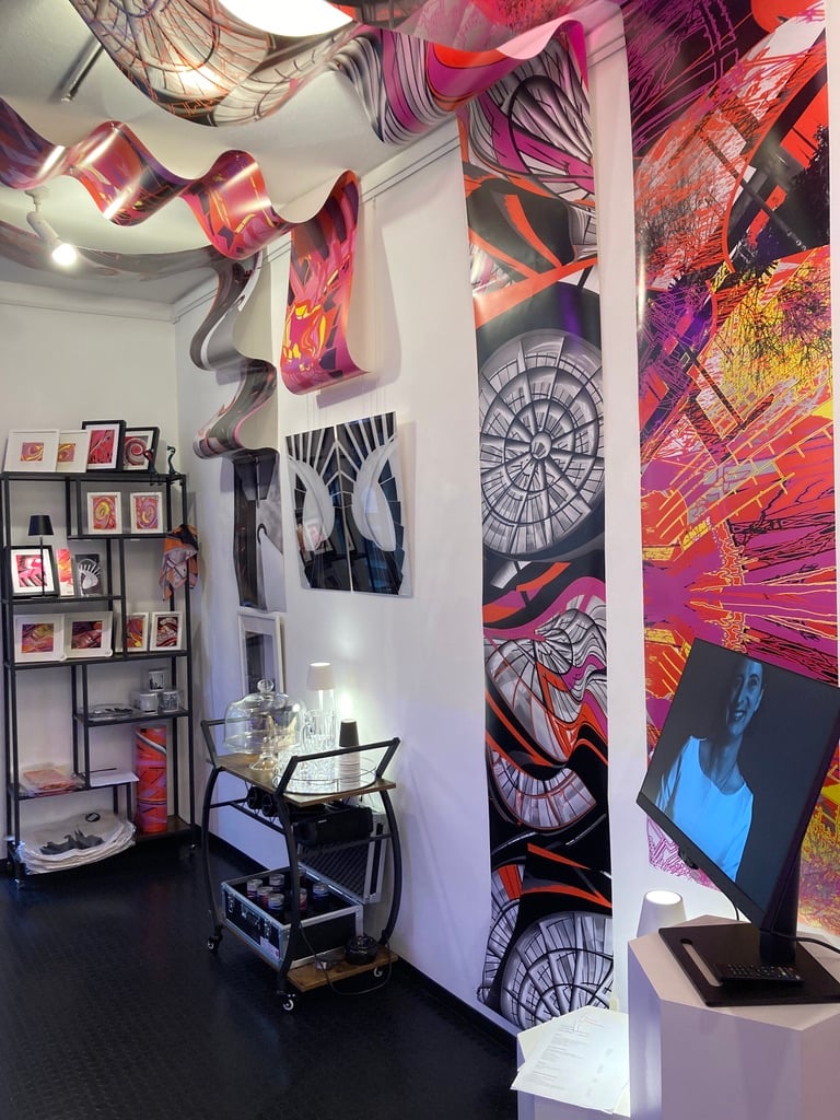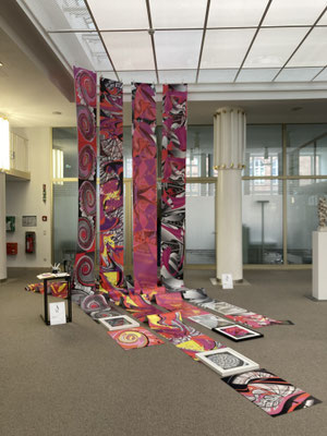 Durch gelenkten Zufall, im Spiel mit den unerschöpflichen Möglichkeiten digitaler Kunst, hat sich diese verselbstständigt und wurde von der Künstlerin in neue Werke transformiert. Mikrokosmos und Makrokosmos sind dabei vernetzt.