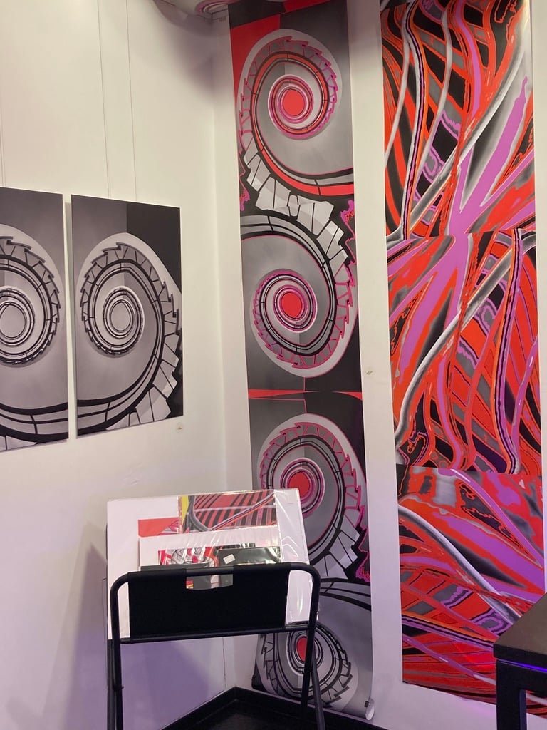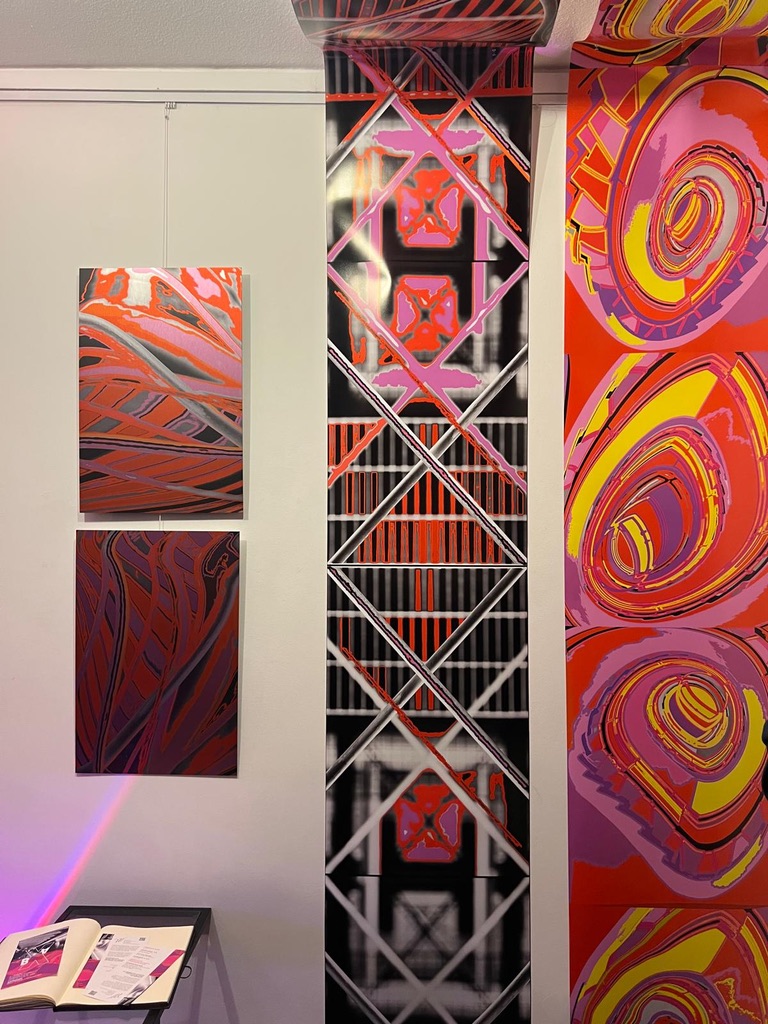 mit 4 Werken der Bilderbahnen 02a und 01b aus dem Zyklus "AUFMISSION" 2025 kreiert jeweils aus einem Bild der Fotokünstlerin